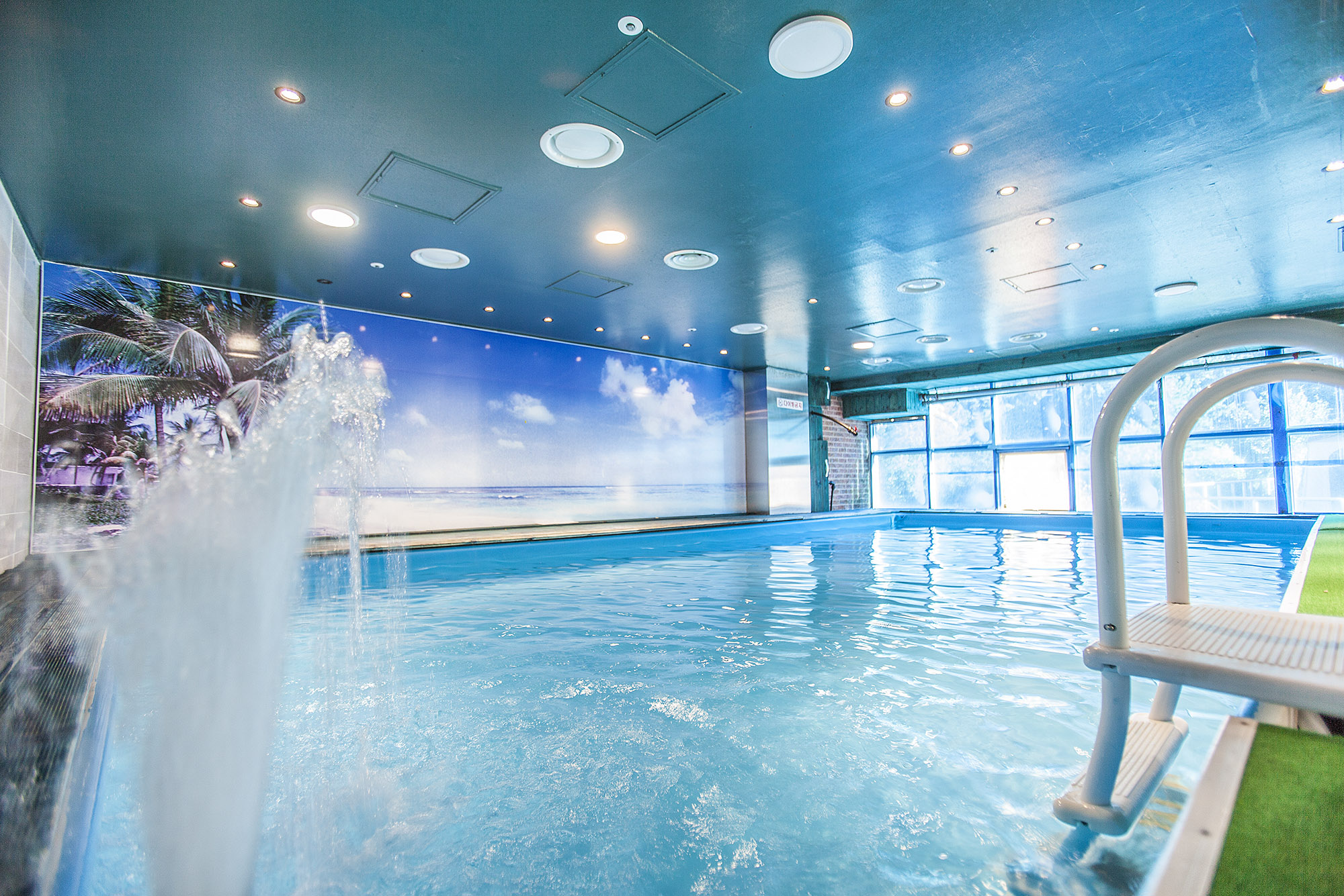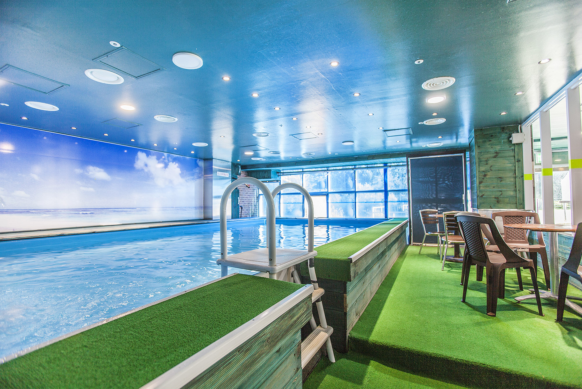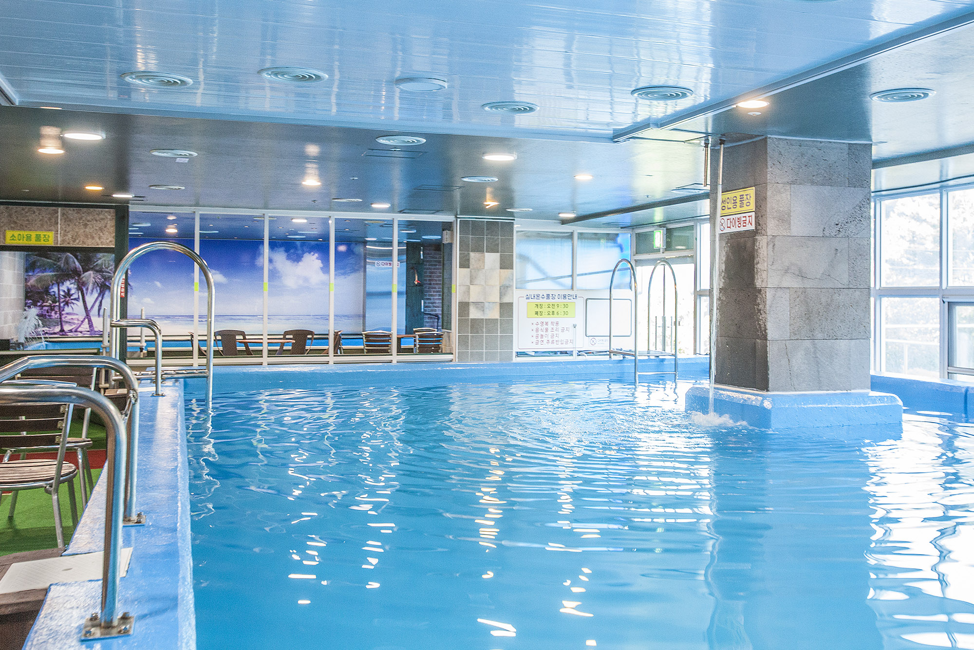 - 차가운 물 걱정하지 않아도 되는 오션파크 실내온수풀장. 알맞은 온도로 편안한 수영을 즐기실 수 있습니다.