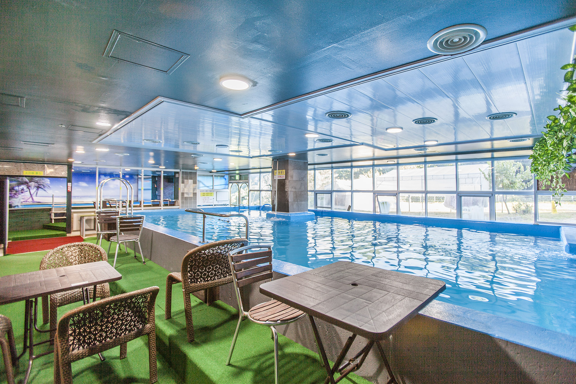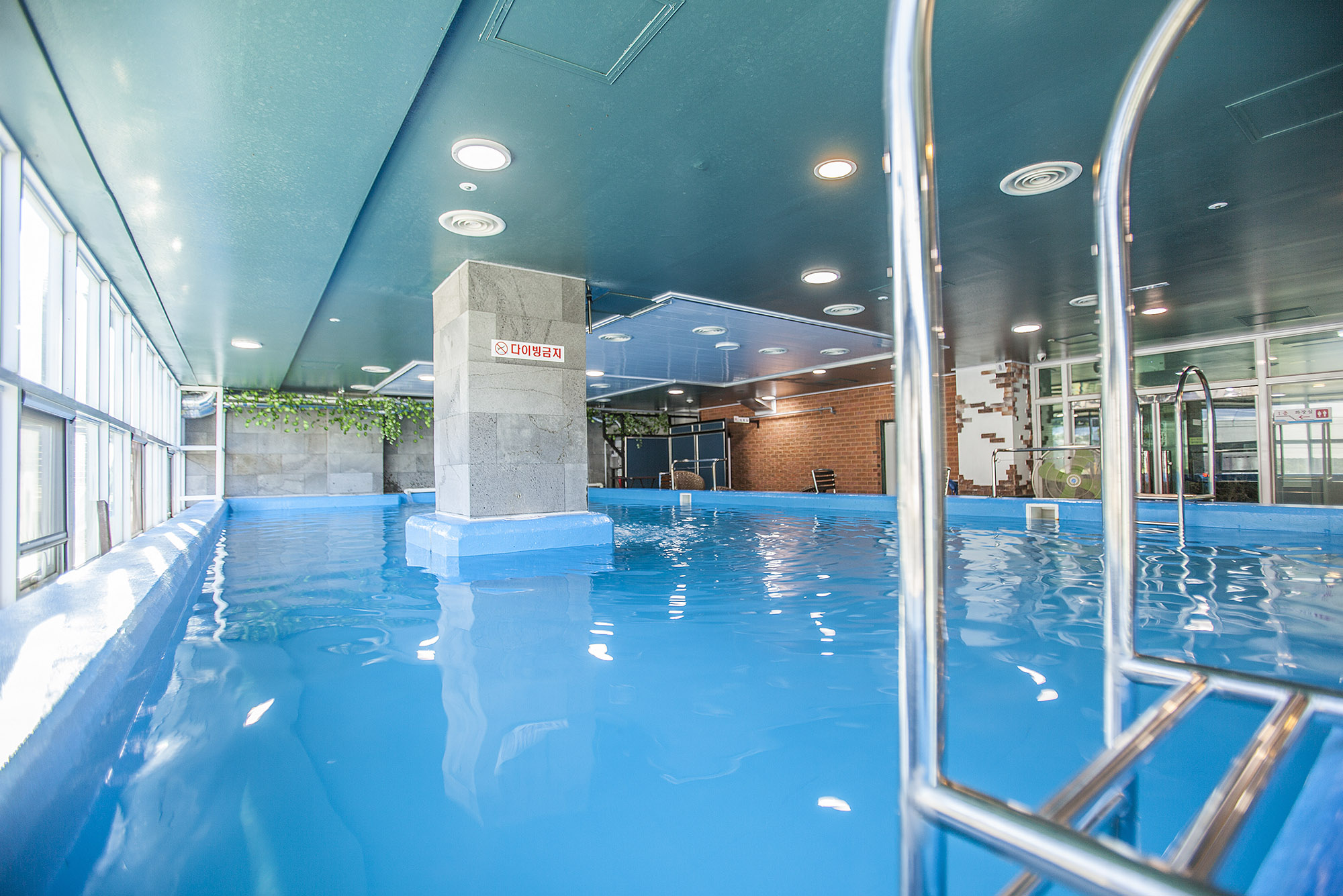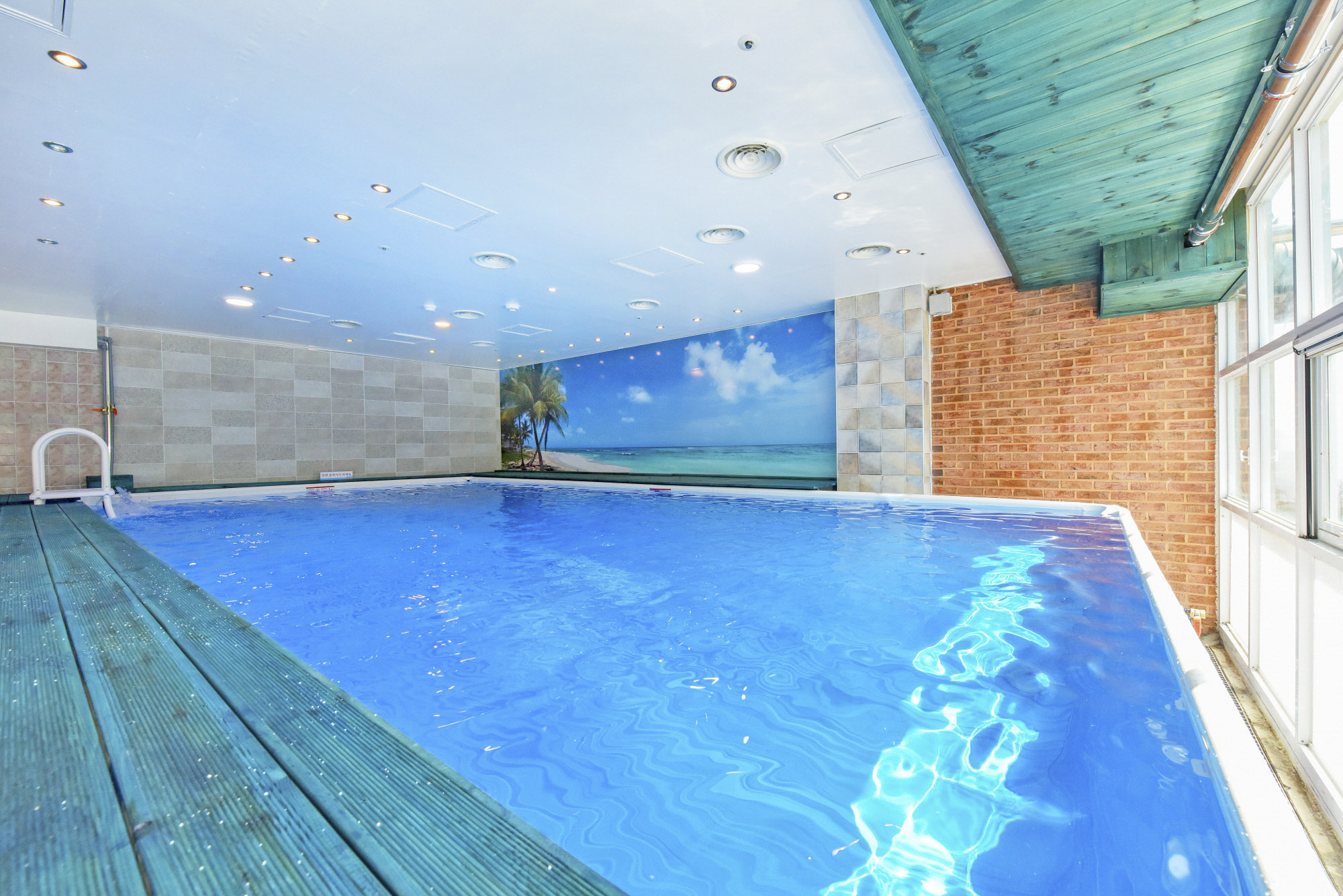 - 차가운 물 걱정하지 않아도 되는 오션파크 실내온수풀장. 알맞은 온도로 편안한 수영을 즐기실 수 있습니다.