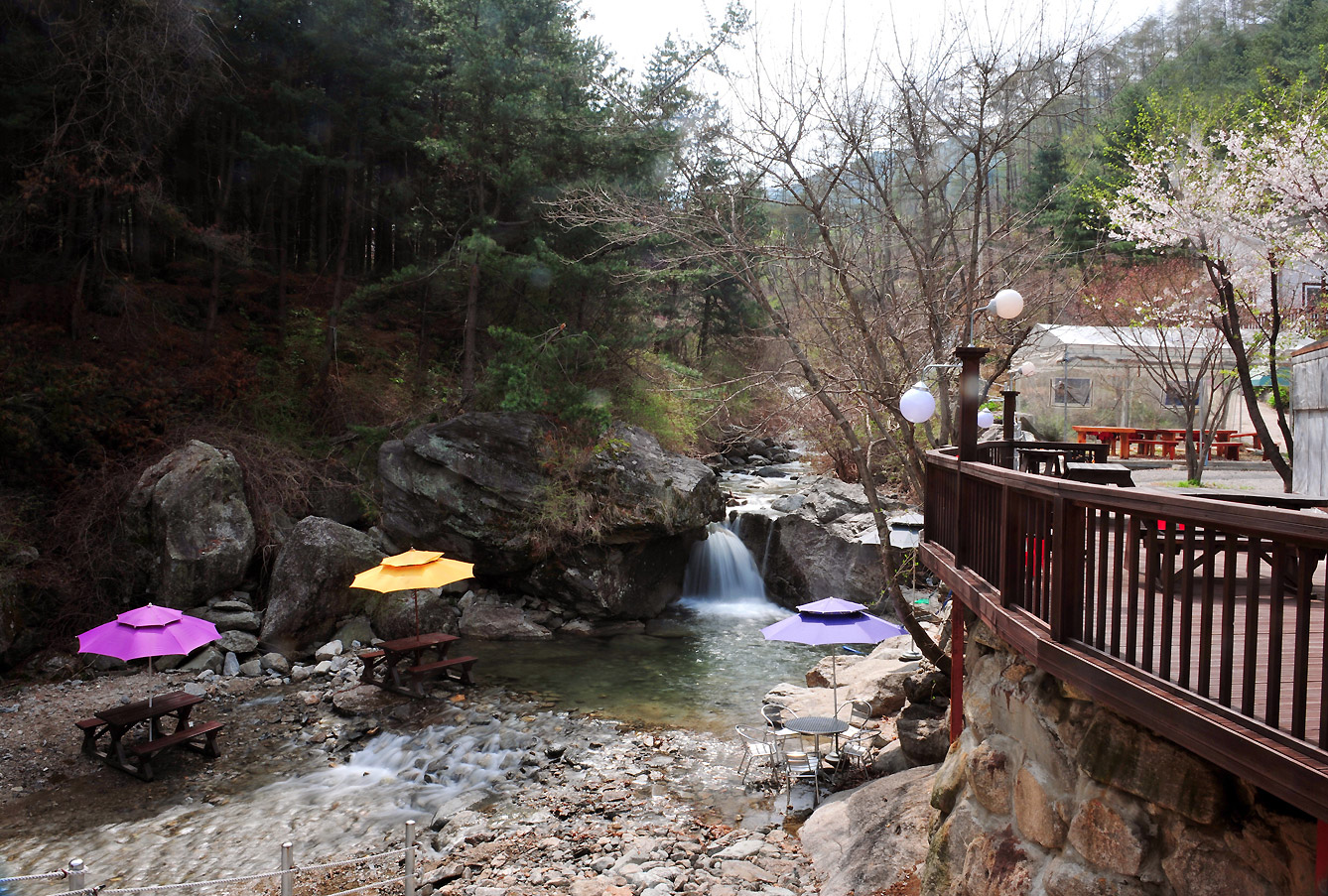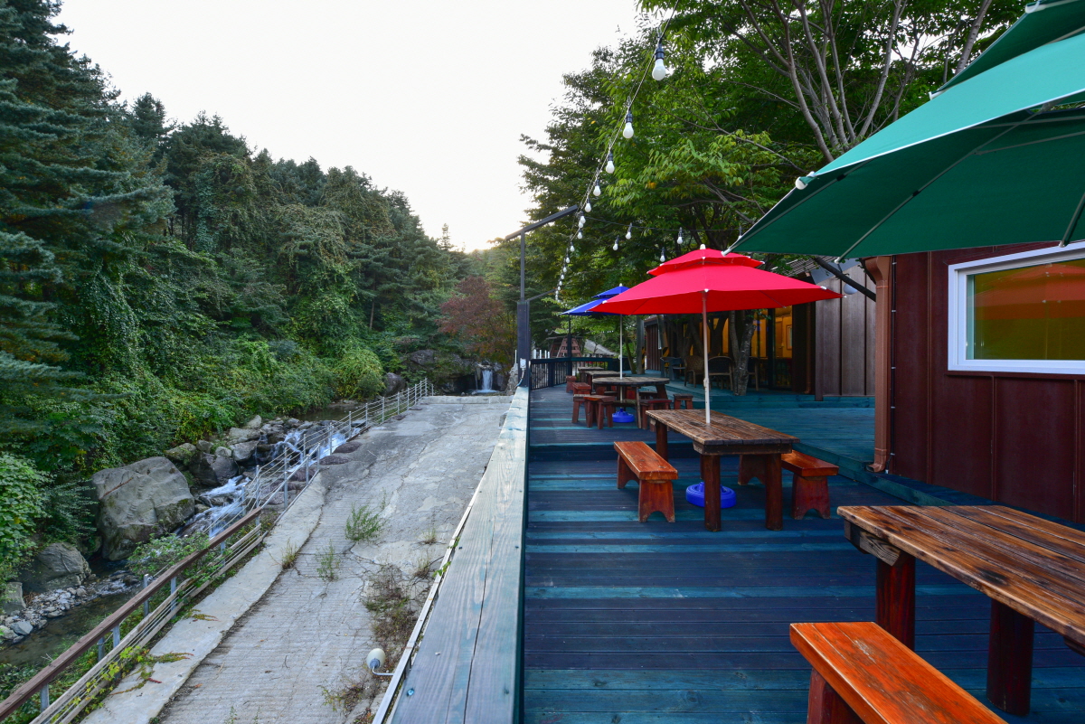 - 펜션 바로 옆에 계곡이 있어 위험한 차도를 건널 필요가 없습니다.